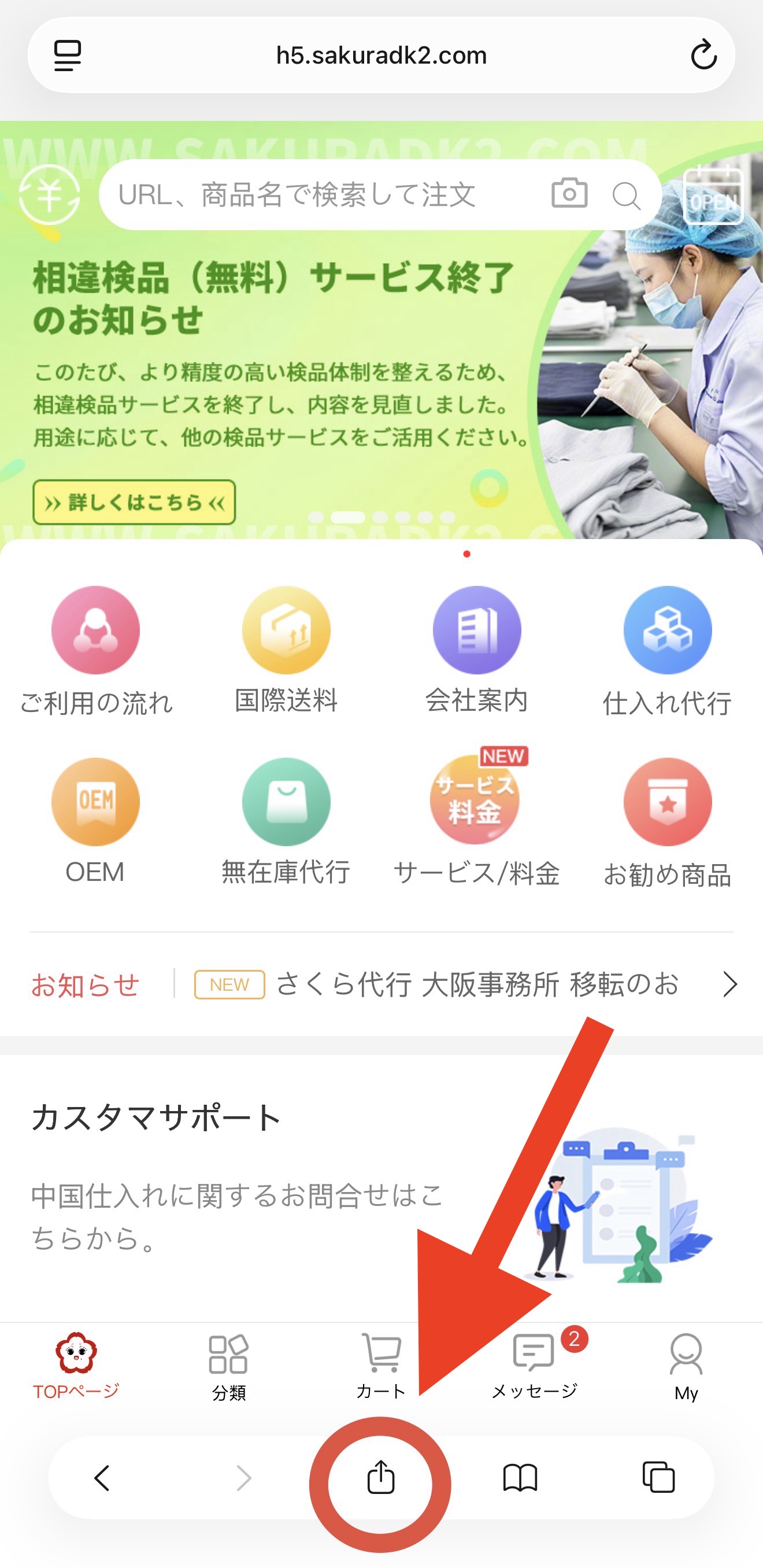 以下の手順で、さくら代行のページを簡単にホーム画面に追加できます。